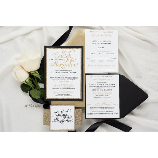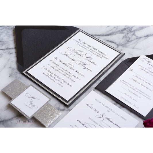 Elegant Glitter Pocketfold Wedding Invitation, Evelyn