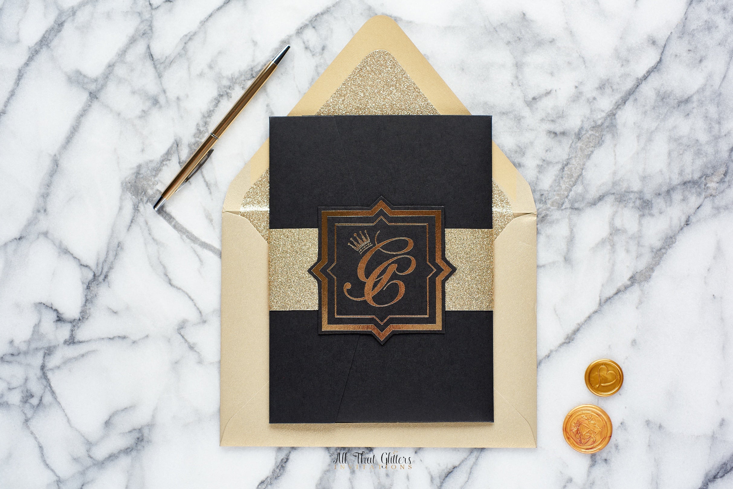 Elegant Glitter Pocketfold Wedding Invitation, Evelyn
