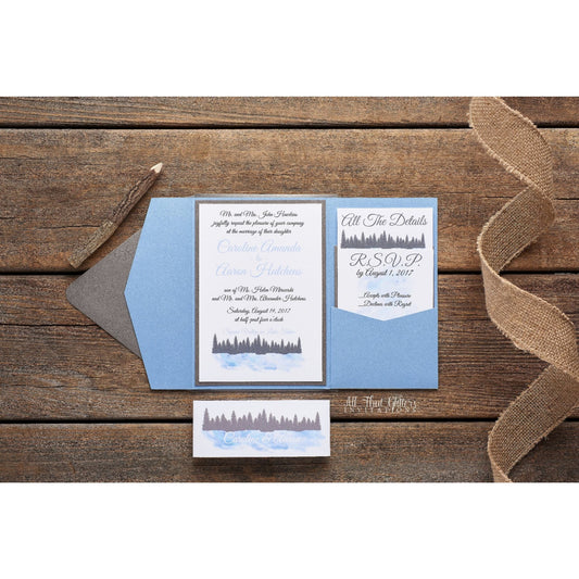 Watercolor Tree and Lake Wedding Invitation, Caroline