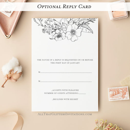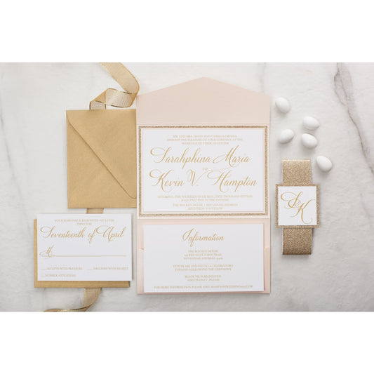 Elegant Glitter Pocketfold Wedding Invitation, Evelyn